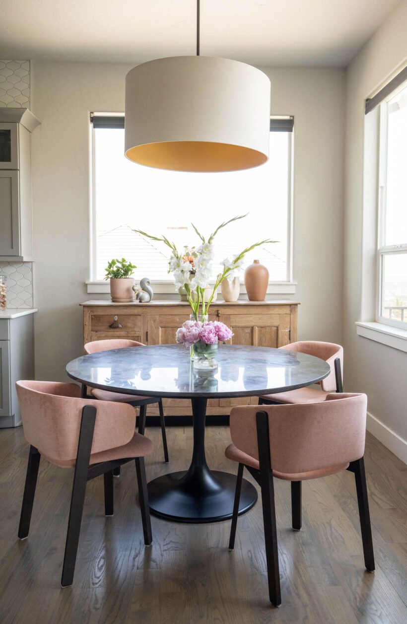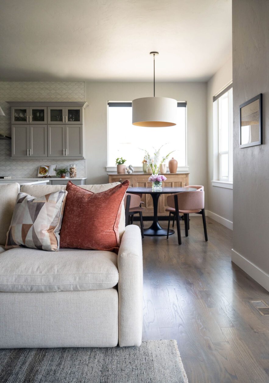This space feels like a breath a fresh air! Turk Designs was hired by their client to refresh their fireplace and living area, entry way and dining nook. While the bones of the home remained somewhat the same, the space feel so comforting and energized with a few thoughtful additions.