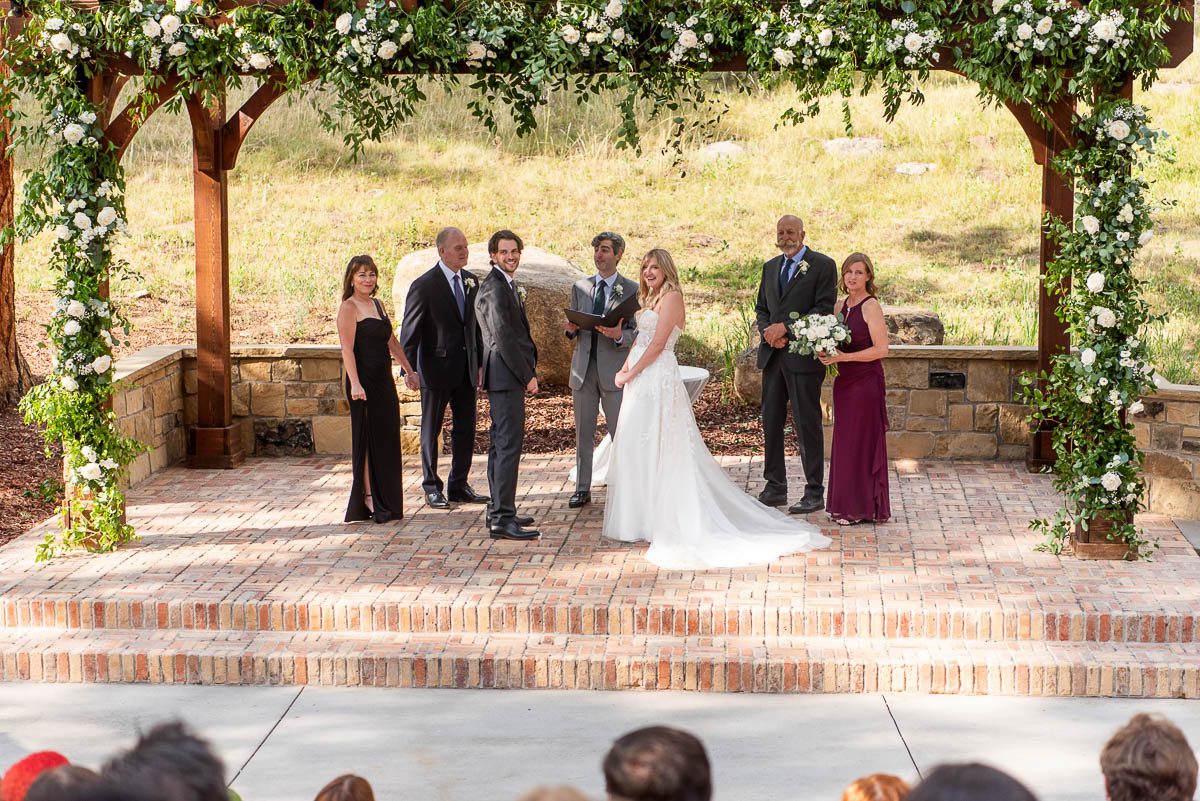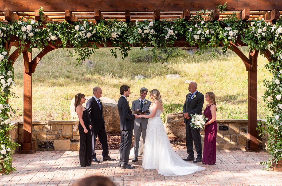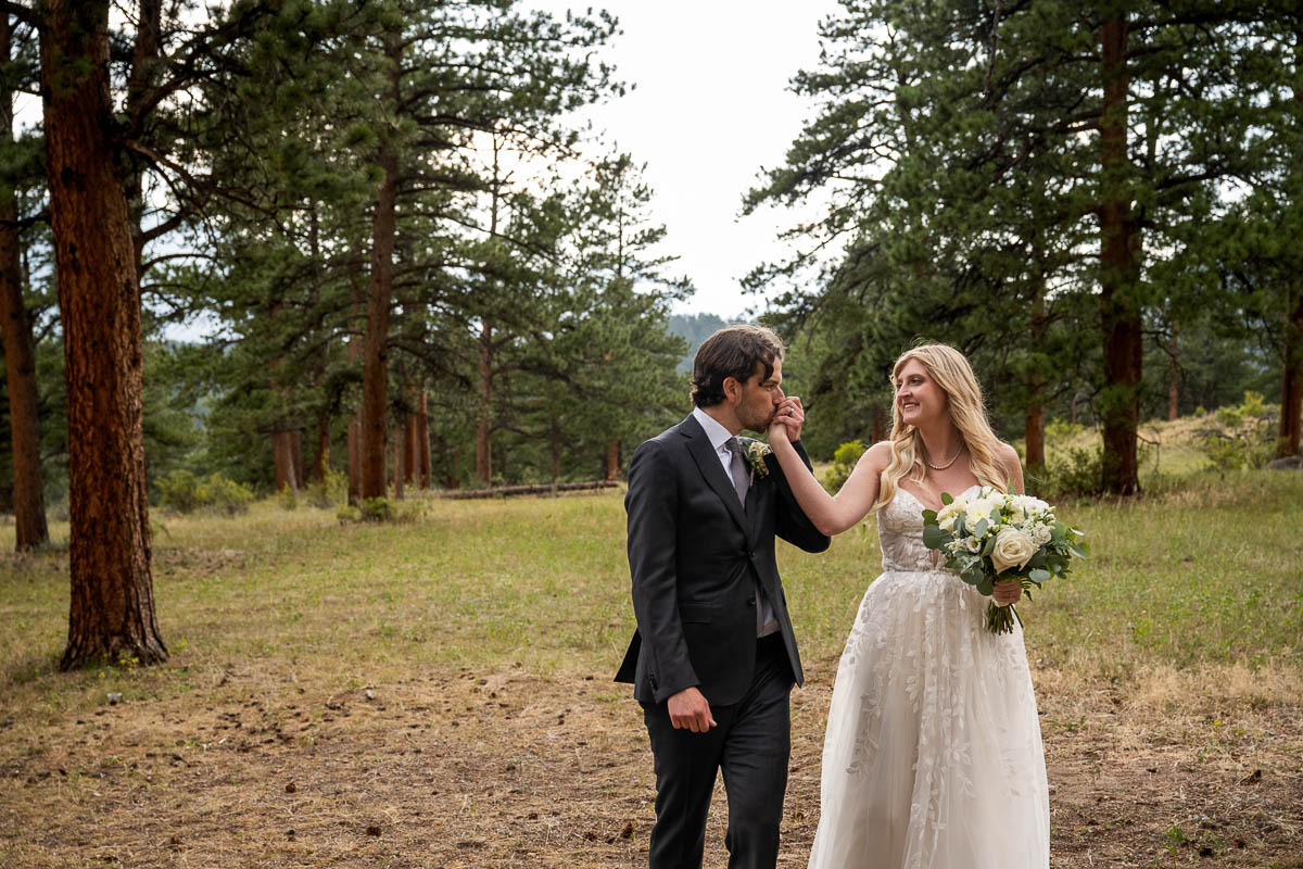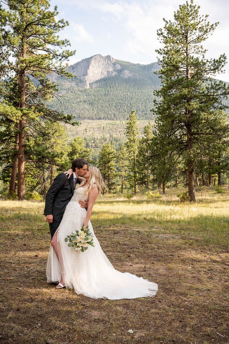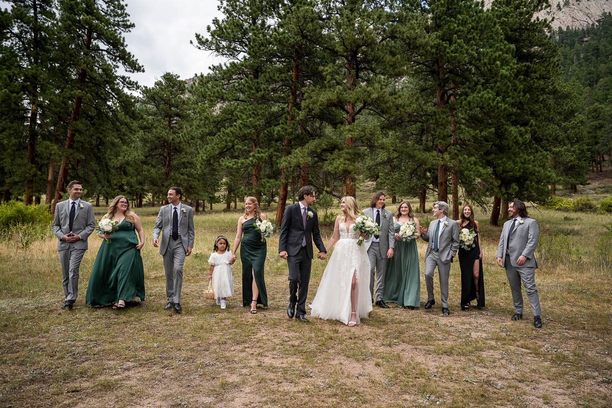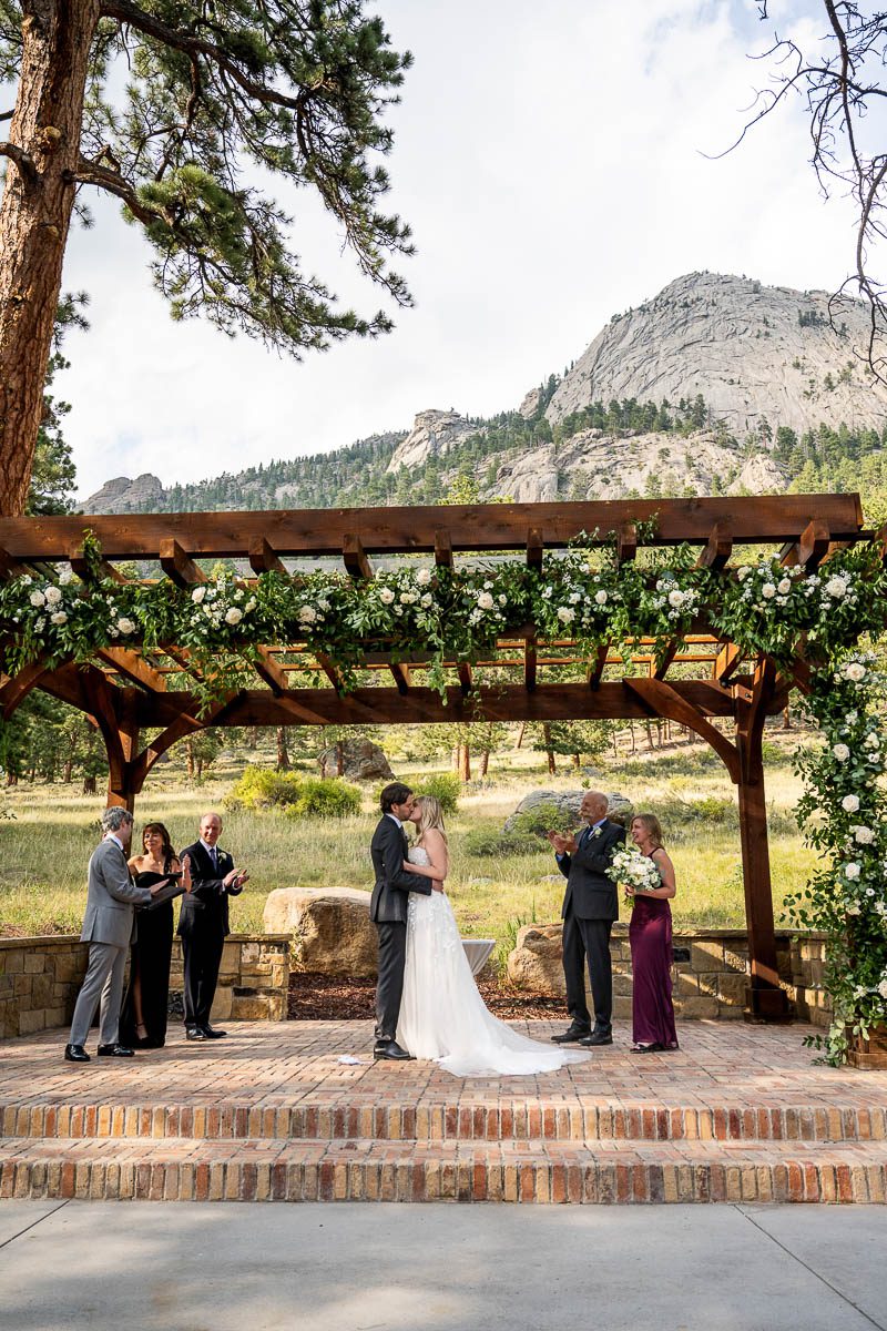 I am so lucky to be a preferred vendor at Della Terra Mountain Chateau in Estes, Park. It is the perfect location in Estes to have a wedding…especially a destination wedding, like a lot of my couple are doing. Because the venue backs up to Rocky Mountain National Park, you get the epic views, wildlife (hello elk friends!) and forest feel, without the need to enter the park and deal with passes, parking and timed-entry. Plus the venue itself is gorgeous and perfect for big weddings and small ones. Here is a wedding from August last year featuring some of the most beautiful florals I’ve seen in awhile and the sweetest couple imaginable.